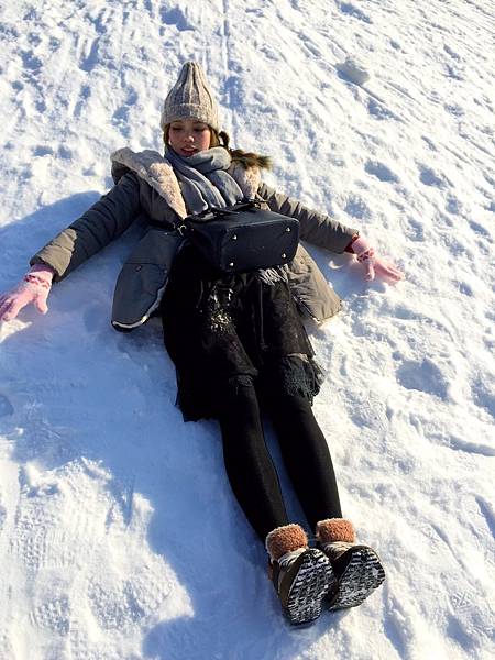 躺在一大片的白雪上拍照也是我們的憧憬之一